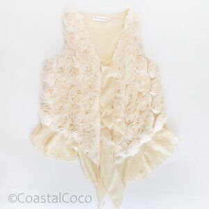 Pretty Angel Ivory Floral Rosette Ruffle Vest L Silk Blend Whimsical Festival