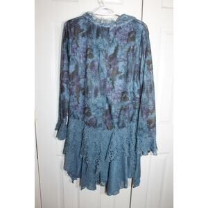 Pretty Angel Long Sleeve Whimsigoth Blue Floral Dress w Lace sz L