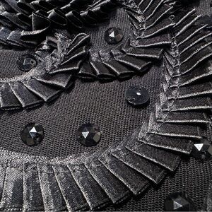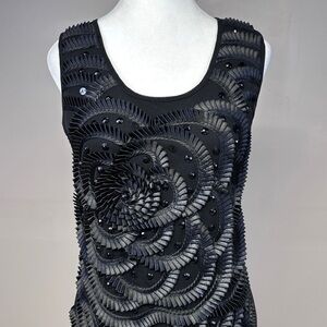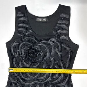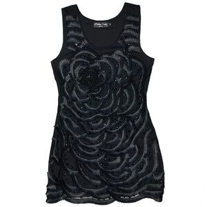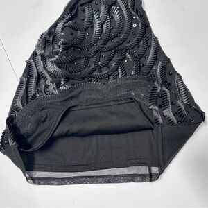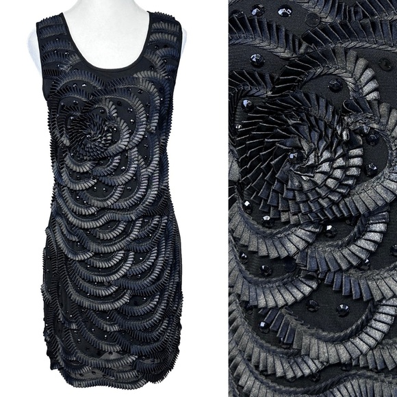 Black intricately ruffled and jeweled bodycon dress