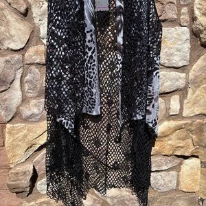 Pretty Angel Silk Long Vest Animal Print Fishnet Black Large Whimsigoth Fairy