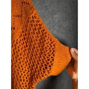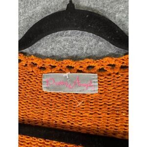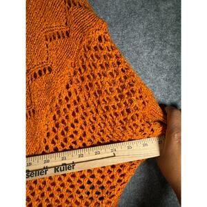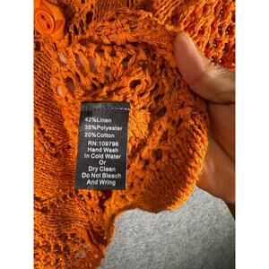 Pretty Angel Sweater Women Small Orange Crochet linen Artsy Oversized Lagenlook