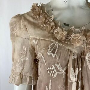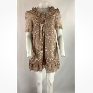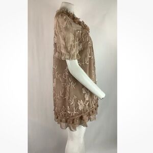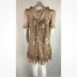 Pretty Angel Sz S Chiffon Babydoll Embroidered Floral Dress Brown Silk Blend