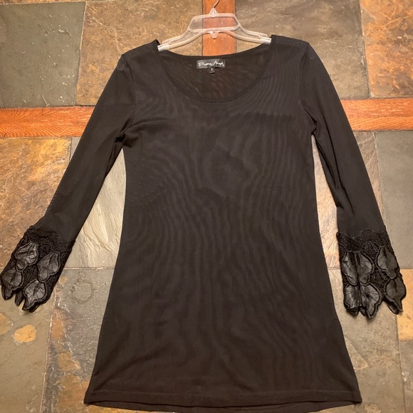 Pretty Angel Top. Outer layer is sheer with solid black liner on the inside. Beautiful sleeve detail with zipper. Worn only once.