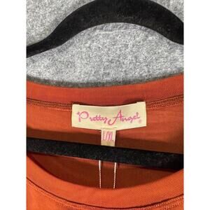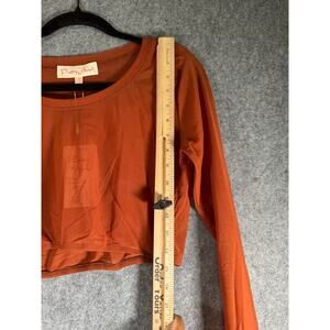 Pretty Angel Top Women L/XL Long Sleeve Cropped Orange Mesh Hippie Boho NWt A4