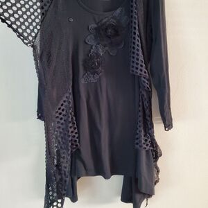 Pretty Angel tunic top w/ lace accent & floral front applique Size M