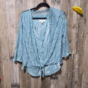Pretty Angel Blue Lace Linen Blend Cardigan Overlay Blouse