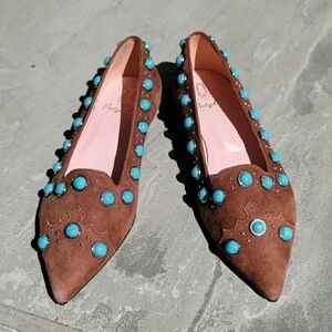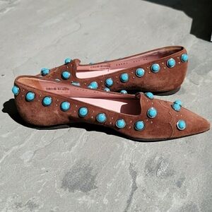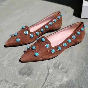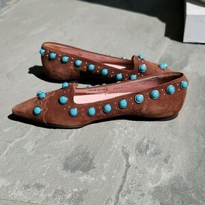 Pretty Ballerinas Brown Suede With Stone Accent Slip On Flats Shoes - Size 36