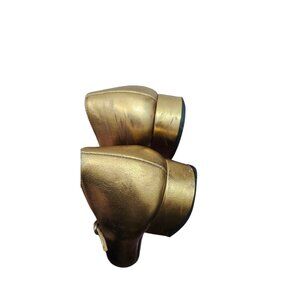 Step out in timeless elegance with these Pretty Ballerinas leather ballet flats, a classic addition to any wardrobe. The sophisticated gold hue complements a variety of outfits, making these flats versatile for both day and evening wear. Designed with a delicate Mary Jane heel, they offer a subtle lift that's comfortable to walk in. Crafted with high-quality leather, these ballet flats feature a size EU 40/US 10, perfect for those who value both style and comfort. The charming character Marie detail adds a touch of whimsy to these otherwise sleek shoes, making them a fashionable choice for the modern woman.