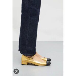 Step out in timeless elegance with these Pretty Ballerinas leather ballet flats, a classic addition to any wardrobe. The sophisticated gold hue complements a variety of outfits, making these flats versatile for both day and evening wear. Designed with a delicate Mary Jane heel, they offer a subtle lift that's comfortable to walk in. Crafted with high-quality leather, these ballet flats feature a size EU 40/US 10, perfect for those who value both style and comfort. The charming character Marie detail adds a touch of whimsy to these otherwise sleek shoes, making them a fashionable choice for the modern woman.