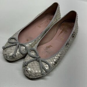 Pretty Ballerinas Rosario Ballet Flats Slip On Flat Shoes Metallic Snake Bow 39