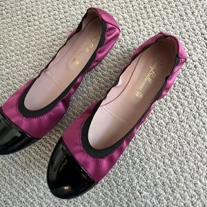 Pretty Ballerinas Shirley Ballet flats. EU size 40.5. Cap in patent leather black, remainder in fuchsia cotton/sateen type fabric. Rubber sole. Made in Spain. Have worn only 1-2 times. In excellent condition.