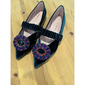 Pretty Ballerinas X FREE PEOPLE Avey Embellished Flats Green Velvet Size 37 NEW