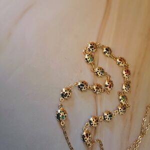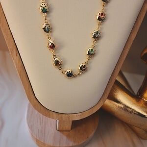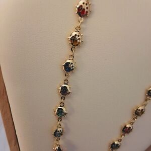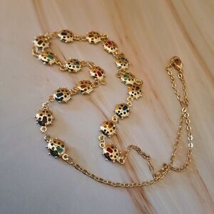 18K Yellow Gold Plated Ladybug Necklace with Multicolor Crystals – 16"-18" Chain