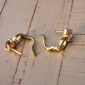 Cue the heart eyes! These dainty Pretty Bird huggie earrings are bringing all the romance with their puffy pink heart-shaped crystals and graceful gold curves. A tiny row of shimmering accent stones adds just the right touch of sparkle for those soft, dreamy vibes.