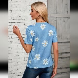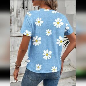 Pretty Blue Daisy Print Crew Neck T-Shirt Sz 6 Slight stretch 95% polyester, 5% spandex Machine washable