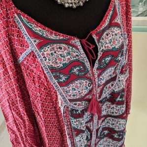 So cute and very flowy! Gorgeous paisley pattern. Excellent condition. Laying flat across from armpit to armpit is about 26" and from shoulder to hem is about 28".