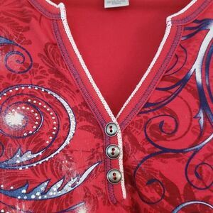 Pretty CJ Banks Patriotic Red White Blue Statue of Liberty Top Sz X