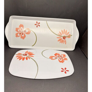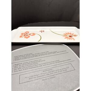 Pretty Corelle Coordinates “Pretty Pink” pattern Melamine TidBit Tray 15" x 6", and matching Pretty Pink Heat Pad 10" x 8". Both pieces are in like new condition, no damage. Lovely white with pretty pink flowers with a green swirls. Please see other Pretty Pink matching pieces I have posted..