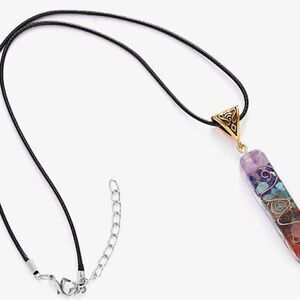 Pretty Chakra pendant necklace. 12”long with stones and bronze detail. Unisex
