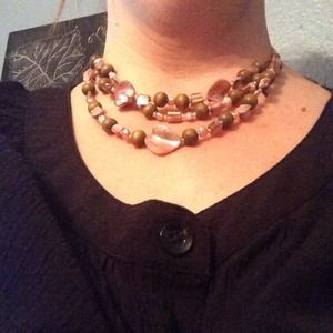 Feminine pink and brown choker. Soft and lovely and compliments many looks