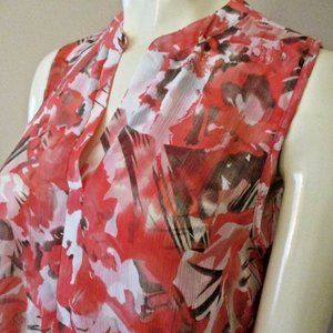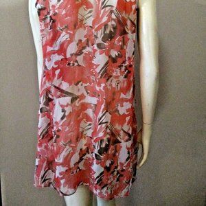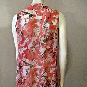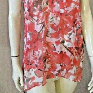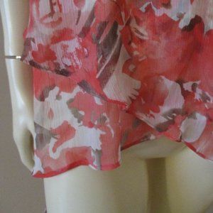 Pretty Coral Floral Hi-Lo Tunic sz M Sheer Crepe Chiffon