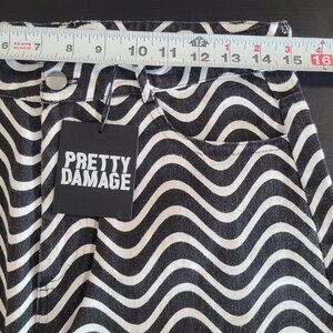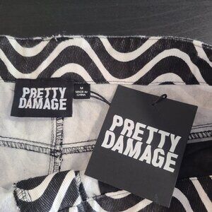 Pretty Damage Wavy Denim Pants Black White Size Medium NWT