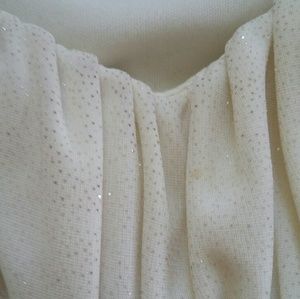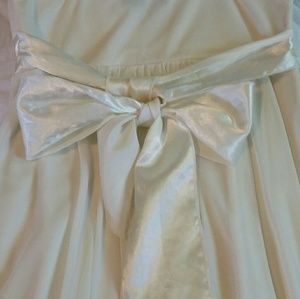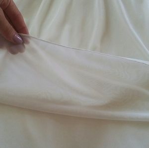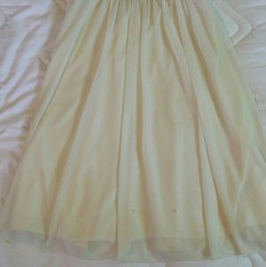 Pretty sweetheart top dress. Its a cream colored light flowy dress that can be worn for girls night out, dinner date, party or a wedding. You can dress it down & cover up with a jean jacket and some heels or sandles. A really cute dress! It has a semi sheer "chiffon like" material on top and slip like material on the inside. It is a zip up back, sweetheart front, tie bow in the back and a prerry bow in the front. The straps are adjustable.