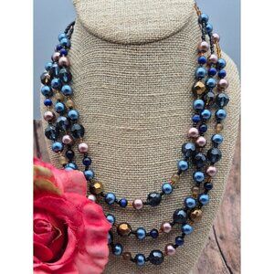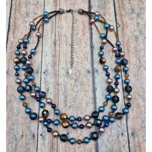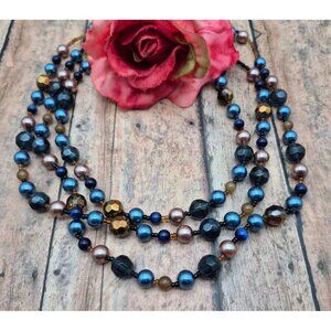 Pretty Esmor Multi Strand Glass Bead Necklace Jewel Tones Blue Gold 22"