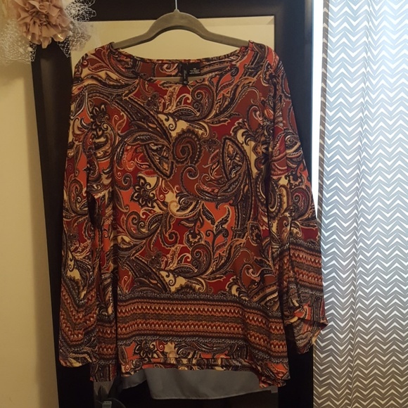 Long sleeve Maroon print blouse, 3x dits more like a 2x