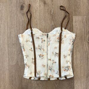 Fully boned and lined. Zip up back. Straps are adjustable.