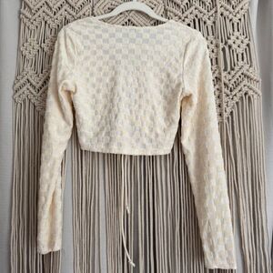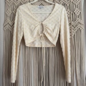 Pretty Garbage Checkered Drawstring Crop Top – Off White – Size Medium – EUC