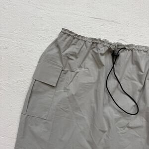 Pretty Garbage cargo mini skirt in versatile gray. Adjustable elastic waistband with drawstring, two cargo flap pockets, and a lightweight cotton shell with soft stretch lining. Easy to style for casual or streetwear looks; mini length works with sneakers, boots, or sandals.