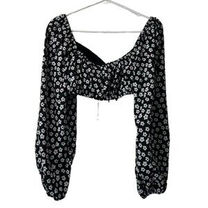 Pretty Garbage Women Floral Tied Crop Top Size Medium Boho Peasant Hippie Crop