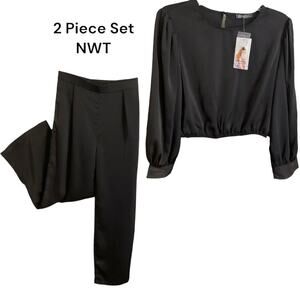 Pretty Garden 2pc Set Size M Crop Satin Soft Top Black Wide Leg Pants High Waist