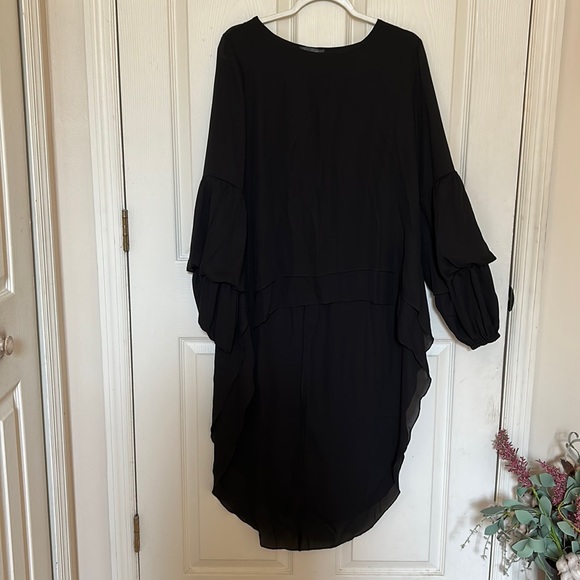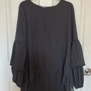pretty garden lantern long sleeve blouse. Round neck high low asymmetrical irregular hem blouse shirt.