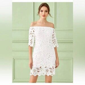 Pretty Garden Floral Lace Cutout Off Shoulder Dress NWT