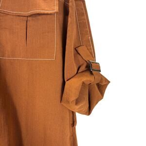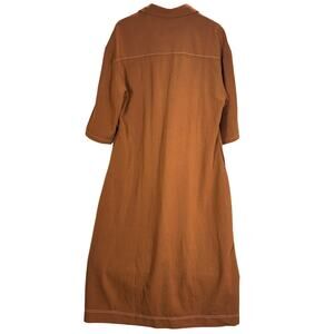 Pretty Garden Medium M Rust Brown Shirt Dress Pockets Roll Tab Sleeve Maxi