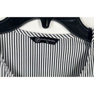 This Pretty Garden Peplum Tie Front Puff Sleeve Blouse in Gray Stripped XL Y2K is a stylish and versatile addition to any woman's wardrobe. Made from polyester, this blouse features a scoop neckline, short puff sleeves, and a tie front closure. Perfect for casual occasions during the summer, fall, or spring seasons, this blouse can be easily styled for a chic look. With its regular fit and basic style, this blouse is a must-have for any fashion-forward woman.