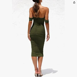Pretty Garden Ruched Off Shoulder Midi Dress Olive Green Size Medium