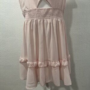 Pretty Garden Size XL Pink Dress Smoked Waist Flared Bottom Ruffle Sleeves Read
