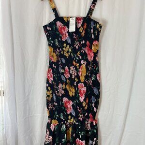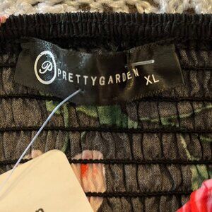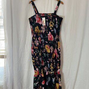 Pretty Garden Woman's Black Summer Floral Midi Smocked Bodycon Dress Sz XL