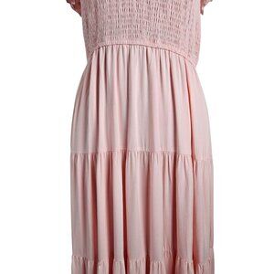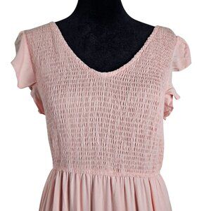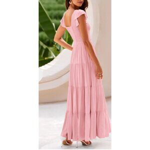 In the gentle embrace of a summer breeze, this flowy maxi dress sways gracefully, whispering tales of sunlit days. Its delicate pink hue captures the essence of blushing dawns, while the smocked bodice offers a snug fit, reminiscent of tender hugs. With each step, the dress flows like a serene river.