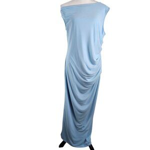 Pretty Garden Womens Formal XL One Shoulder Ruched Maxi Dress Light Blue Wedding