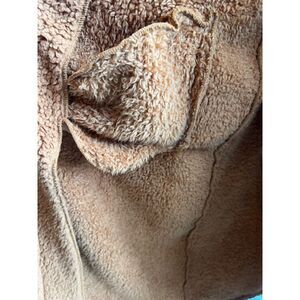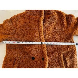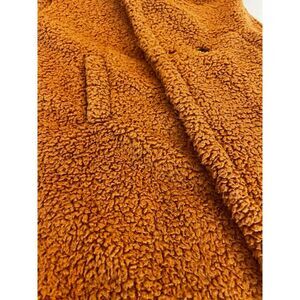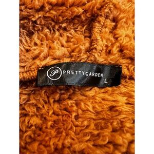 Adorable and trendy Pretty Garden Women's knee-length teddy bear sherpa fleece coat in a size large. This Baggy Sherpa style coat has Two Side Pockets, a shawl colar and hood to protect you from the elements! The Fleeced Material Lets You Enjoy a Comfy Touch, Friendly to Skin. The color is an orangy brown