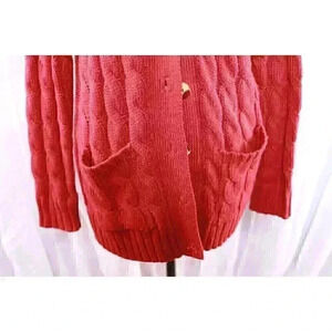 This Pretty Garden cardigan with a relaxed fit and cable-knit pattern is perfect for any occasion, whether you're traveling, running errands, or going to a business meeting. The V-neckline and button front add classic accents to this sweater, while the pockets provide extra convenience.