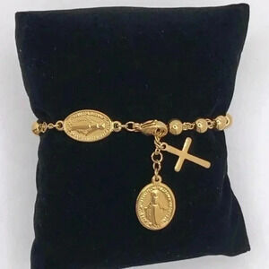 Pretty Gold Tone Stainless Steel Rosary Bracelet NWT