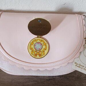 Channel your inner Sailor Guardian with this crossbody bag! Featuring an enamel appliqué of Sailor Moon's Crystal Star Compact (which can open up with the hinged cover and magnetic closure!), this anime-inspired bag features a scalloped front snap button closure flap to help keep all of your belongings together. Also features an enamel brand badge on the back, an adjustable shoulder strap, and a Star Power Stick interior lining pattern.
