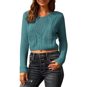 Pretty Guide Cropped Sweater Top Size Small Eyelet Cable Knit Lace Up Goth