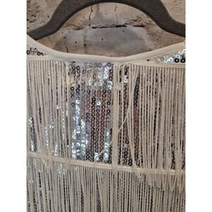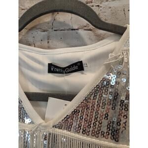 Pretty Guide Sequins Silver Dress With Fringes Short Sleeve Size 12