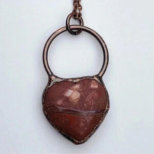 Pretty Handmade Heart Shape Brecciated Jasper & Antiqued Copper Rustic Necklace